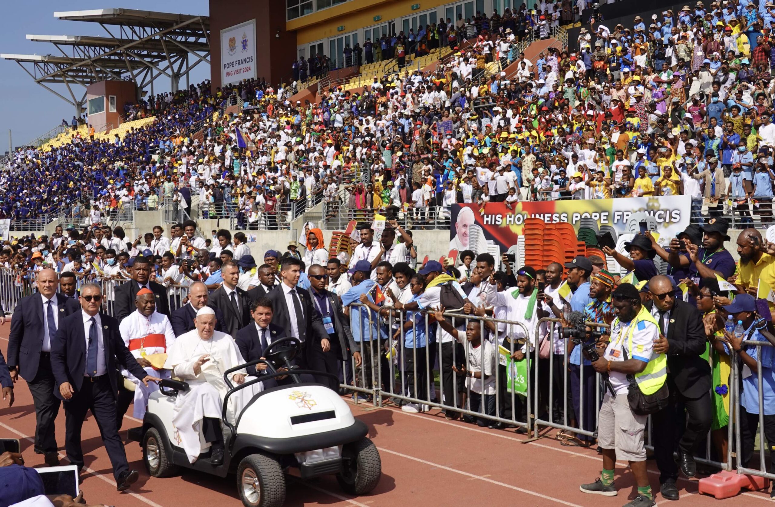The Holy Father then expressed his joy at being in a country full of young people and thanked them for their beautiful performance. He proposed two models for them to choose from: confusion and division or love and harmony with God and their brothers and sisters. Interacting with the thousands of young people present, he emphasized building harmony with God and others, stressing the importance of caring for grandparents. Reminding them of the many dialects in the country, he highlighted the language of love, the language of the heart, the language of closeness, and the language of service. "You must be ‘Wantoks of love’ and bring people together," he said, amidst cheers from the young people. He also used the image of climbing the mountain and encouraged them to rise whenever they fall, saying, "Don’t stay down," and urged them to lift their companions when they stumble or fall.